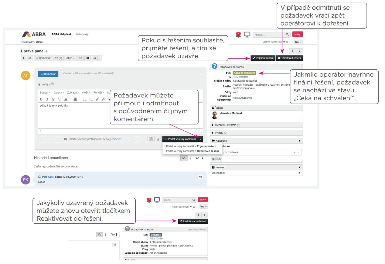 Uzavření požadavku a schválení řešení |