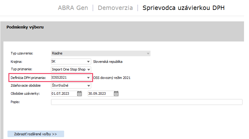 Pre priznanie IOSS je nutné zvoliť poslednú platnú definíciu priznania, čo je v našom prípade definícia IOSS2021 platná od roku 2021.