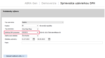 Nastavenie aktuálnej definície uzávierky DPH.