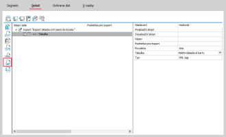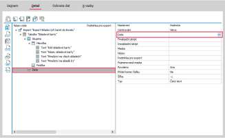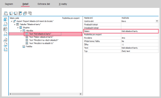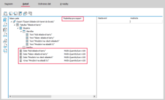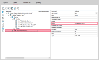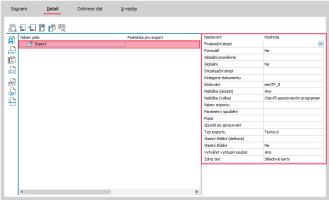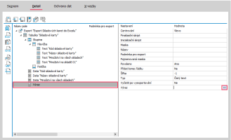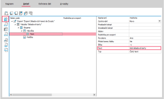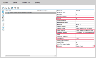 Otevře se Editor definic exportu, kde klikneme na název Export (viz obrázek), čímž se zobrazí vpravo vlastnosti exportu.