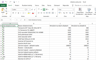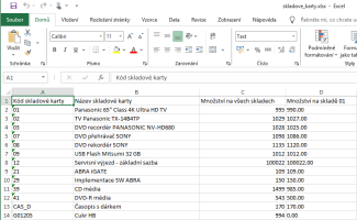 Výsledek v Excelu bude bez skladových karet s množstvím menším než 100.