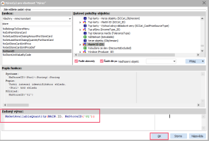 Na funkci dvakrát poklepeme levým tlačítkem myši, aby se funkce vložila do pole pro psaní výrazu. Funkce ve svých parametrech vyžaduje ID skladové karty a ID skladu. Protože bychom museli ID skladu složitě dohledávat z agendy Sklady, použijeme další funkci s názvem NxStoreID s parametrem Kód skladu (v našem případě 01), která nám ID skladu vrátí. Poté potvrdíme tlačítkem OK. Zápis obou funkcí bude tedy vypadat následovně.