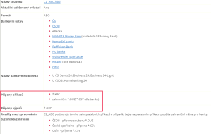 Na konec musíme ještě upozornit, že na koncovkách souborů bankovních příkazů a výpisů velmi záleží. Typy souborů jednoznačně určuje ovladač, není tedy možné v ovladači libovolně koncovky přepisovat, vždy je nutné použit ty, které jsou u ovladače uvedeny jako podporované.