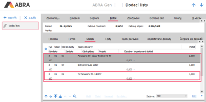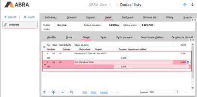 Vytvoříme doklad Dodací list, na kterém budou 2 ks skladové karty 01 a 1 ks skladové karty 07.