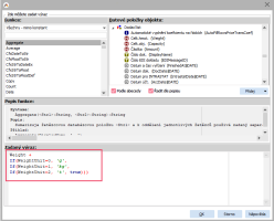 Jelikož se nyní zobrazuje hmotnost, ale nevíme v jaké jednotce, tj. zda jde o gramy, kilogramy nebo tuny, musíme doplnit ještě jeden sloupec s jednotkou hmotnosti. Postup bude stejný jako v předchozím případě, jen položka z datového zdroje bude mít název Jedn.celk.hm (WeighUnit). Protože se jednotka zobrazuje jako celé číslo v databázi (0-gram, 1-kilogram, 2-tuna), musíme použít funkci If, abychom si mohli jednotky k jednotlivým číslům přiřadit.