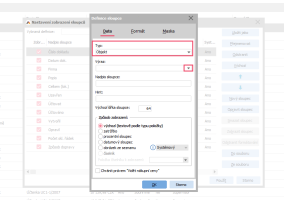 Následně klikneme na funkci Nový sloupec a v okně Definice sloupců ponecháme Typ nastaven na hodnotu Objekt a v poli Výraz klikneme na šipku, aby se otevřel editor výrazů.