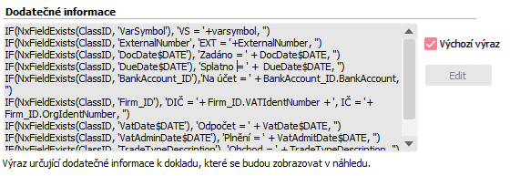 Obdobná funkcionalita, pouze bez defaultně dodávaných dodatečných informací, je k dispozici v agendách Žiadosti o platobné príkazy a Prehľad platieb bankou, kde okno náhledů poskytuje okamžitý náhled tisku placených dokladů.