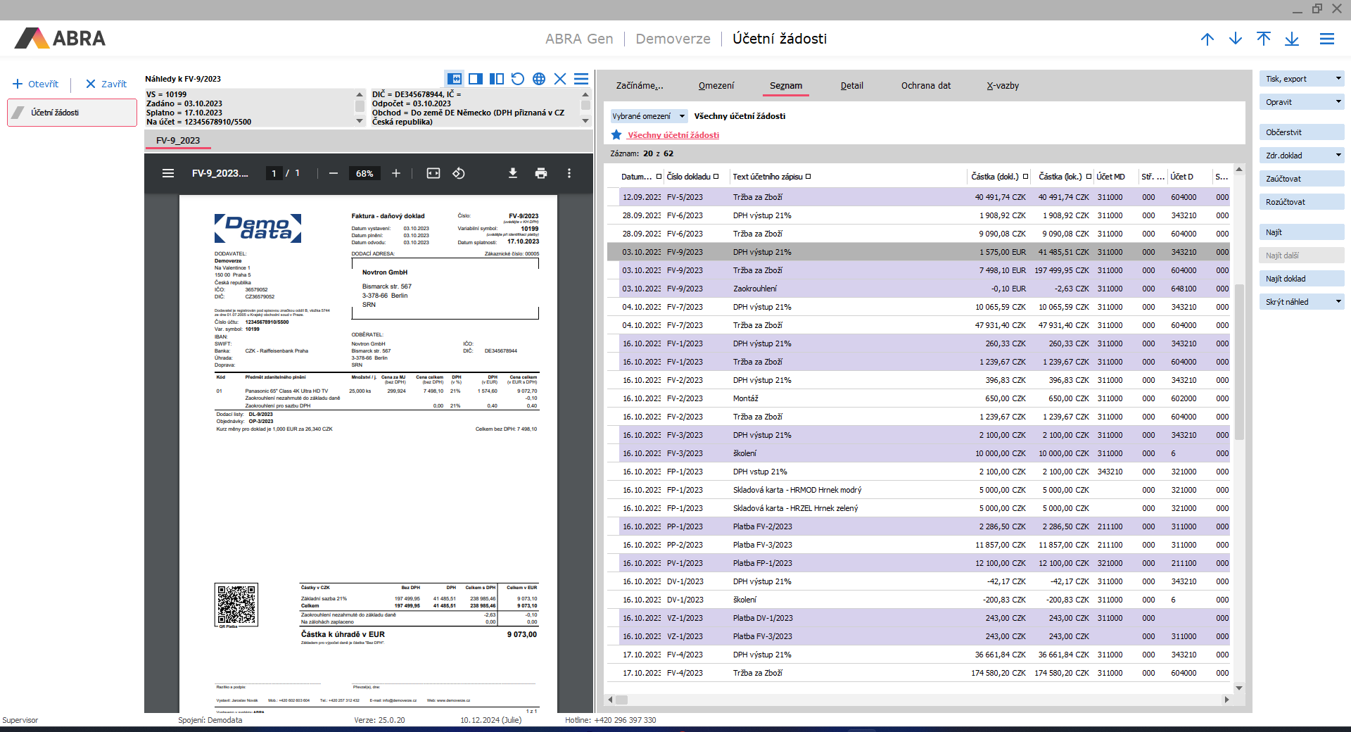 • Účetní - V agendách Účtovný denník, Saldokonto - účtovný denník súvzťažne, Saldokonto - účtovný denník súvzťažne podľa párovacích znakov nebo Účtovné žiadosti si může účetní okamžitě zobrazit náhled tiskové sestavy konkrétního dokladu. Tyto agendy dále umožňují zobrazení tzv. dodatečných informací, což jsou vybrané položky dokladu v textovém formátu umístěné nad náhledem, které lze snadno kopírovat.