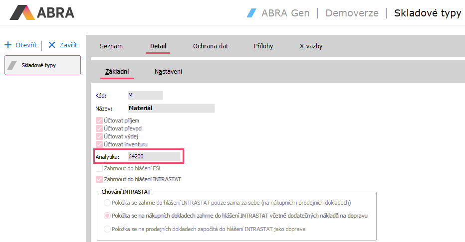 V agendě Skladové typy tedy dohledáme požadovaný skladový typ a na záložce Detail upravíme nastavení položky Analytika.
