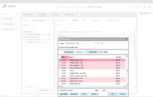Lze použít položku Účet MD a D a požadované účty vybrat z agendy Účtový rozvrh. Lze označit a vybrat více účtu naráz. (Pravidlá práce so zoznamom (možnosti označovania, triedenia, definície vlastných stĺpcov a pod.) viď kap. Needitovateľný zoznam.) Pokud máte účty označeny, pokračujte stiskem tlačítka OK: