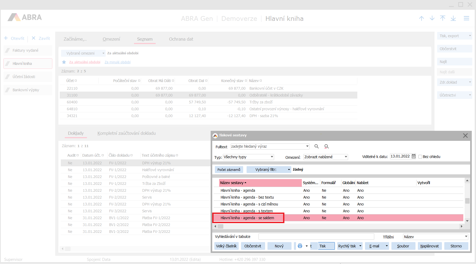 Pokračujte stiskem tlačítka Získať záznamy. Zobrazí se výpis z hlavní knihy.