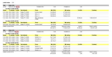 Pro kontrolu stavů na účtech v jednotlivých účetních obdobích jsou k dispozici souhrnné účetní výkazy.