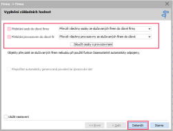 V dalším kroku nastavíme, zda se mají přebírat všechny osoby a provozovny do cílové firmy, nebo zda se mají převzít pouze ty údaje, které v cílové firmě nejsou. Případně je také možnost nepřebírat nic. Můžeme také zatrhnout volbu Sloučit osoby s provozovnami, pokud je taková akce potřeba.
